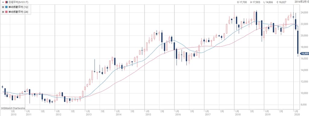日経平均の推移⇒ジグザグに上昇下降を繰り返す